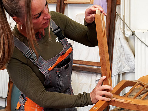 Zudem bietet die Werkstatt "Passgenau" Dienstleistungen wie Gartenpflege und Möbelaufarbeitung an, bei denen Menschen