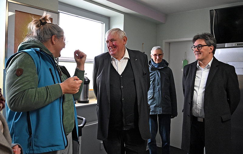 Pfarrer Niels Back, Geschäftsführer des Diakoie Dortmund und Lünen, berichtete dem Minister, was er mit dem Fördergeld machen möchte: „Im Sommer heizen sich die Räume unserer Bahnhofsmission stark auf. Deshalb werden wir neue Rollos kaufen. Außerdem bauen wir auf der dem Gleis zugewandten Seite ein Vordach.“ Oft gebe es so viel Andrang, dass die Menschen auch bei Regen und Kälte draußen vor der Bahnhofsmission warten würden. Das soll sich bald ändern.